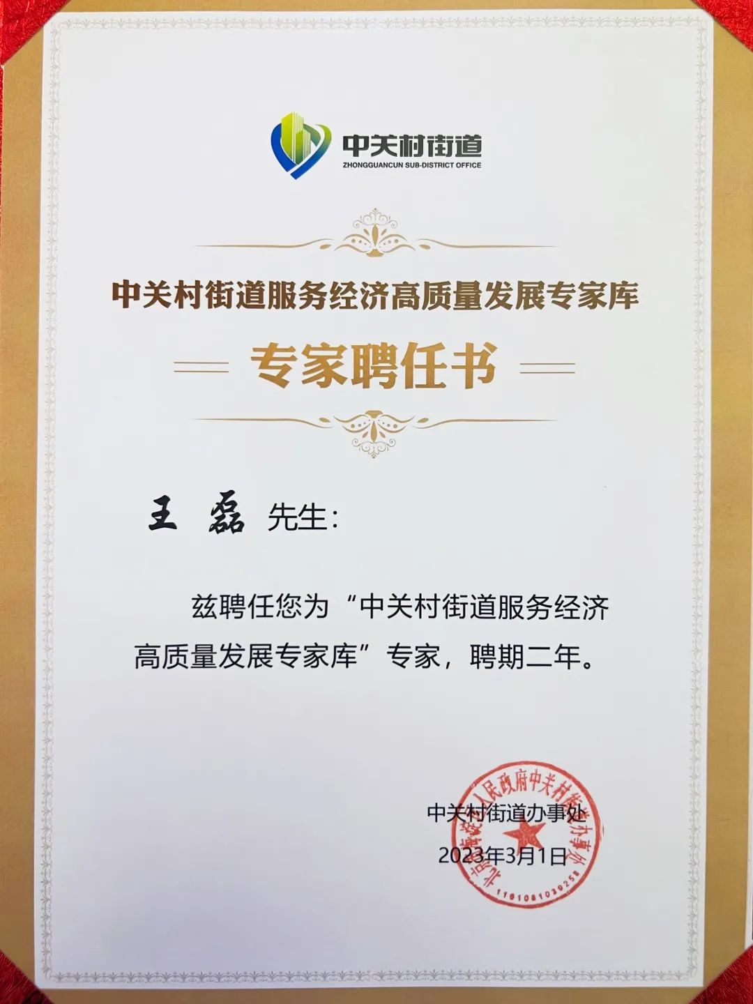 中科闻歌董事长、中关村商会副会长王磊入选服务经济高质量发展专家库