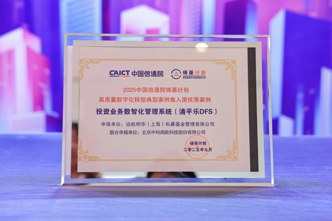 中科闻歌与远航明华联合打造的“清平乐DFS”投资业务数智化管理系统,成功入选信通院《高质量数字化转型典型案例集》优秀案例。